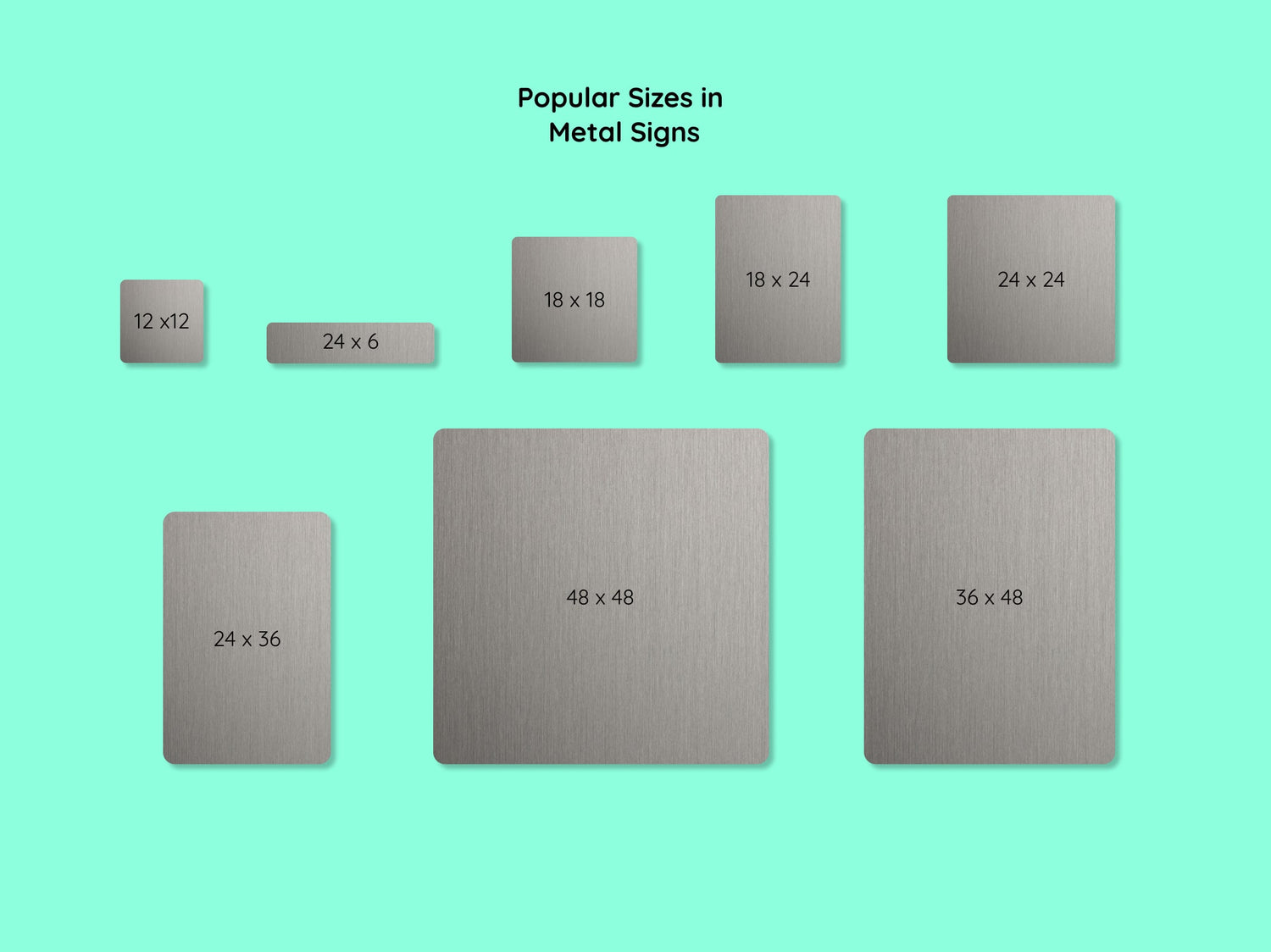A: Yes, Custom Aluminum Signs come in fully customizable dimensions. We also offer popular sizes like 12" x 12", 24" x 6", 18" x 18", 18" x 24", 24" x 24", 24" x 36", 48" x 48", 36" x 48"; but you can choose the exact size that fits your needs.