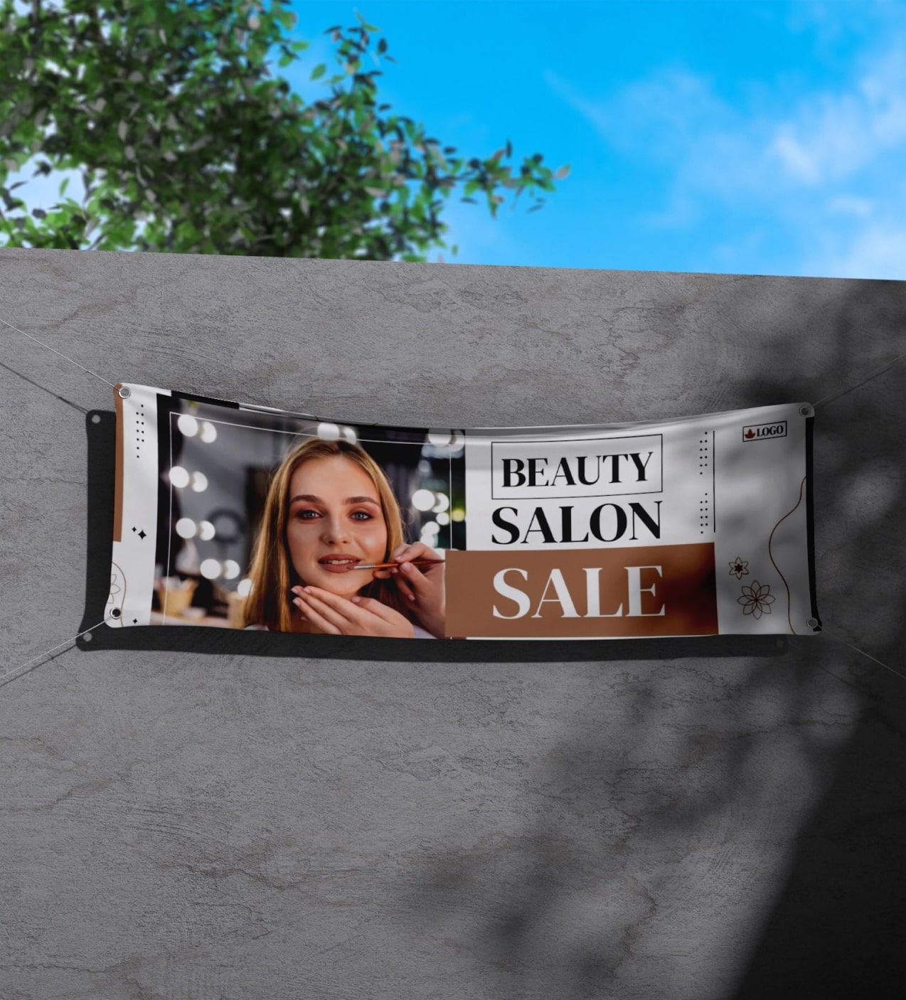 - Add branding with custom logo outdoor banners, vinyl logo banners, or outdoor banners with logos.