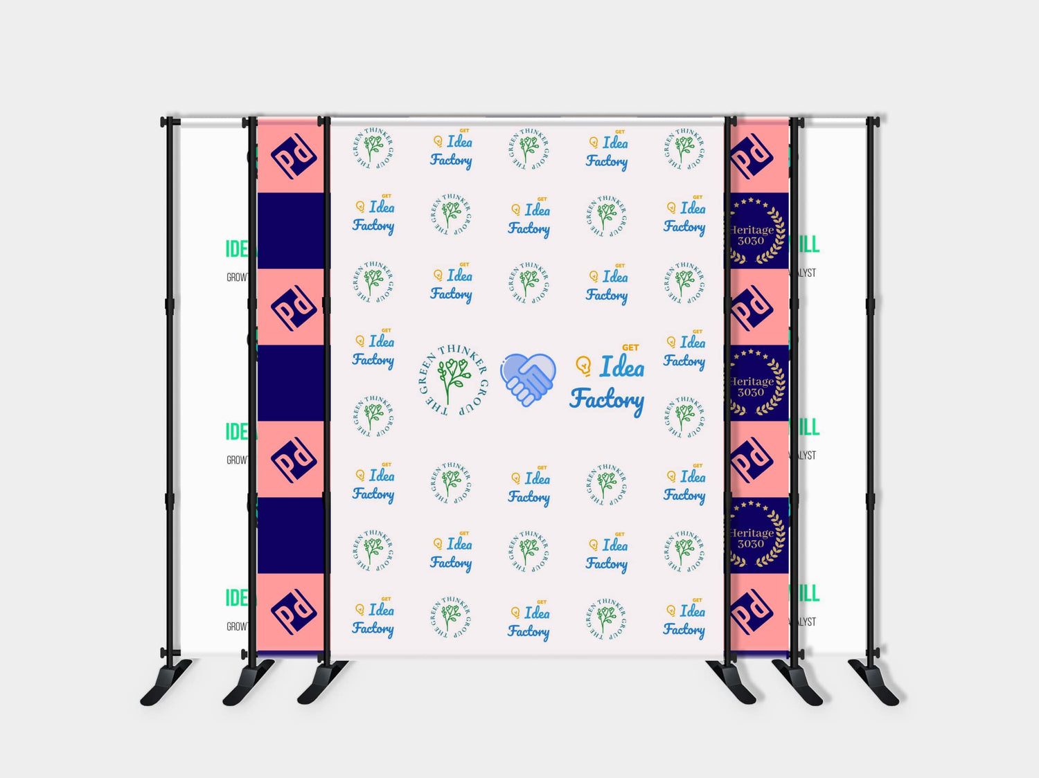 A step and repeat banner with stand is a large printed backdrop, usually featuring repeated logos or graphics, paired with an adjustable banner stand for easy setup at events. The stand is typically telescopic, which means its height and width can be adjusted to fit different banner sizes. This makes it a go-to solution for trade shows, corporate branding, red carpet events, and photography backdrops.