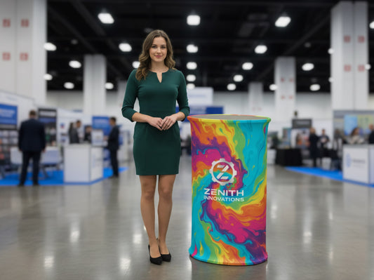 At PrintDrill, we offer a complete collection of portable trade show counters, including pop-up counters, backlit counters, oval counters, trade show podiums, and counters with storage, designed for 10×10, 10×15, and 10×20 trade show booths. All models are lightweight, tool-free, and easy to transport—many even convert from a case to counter for maximum efficiency.