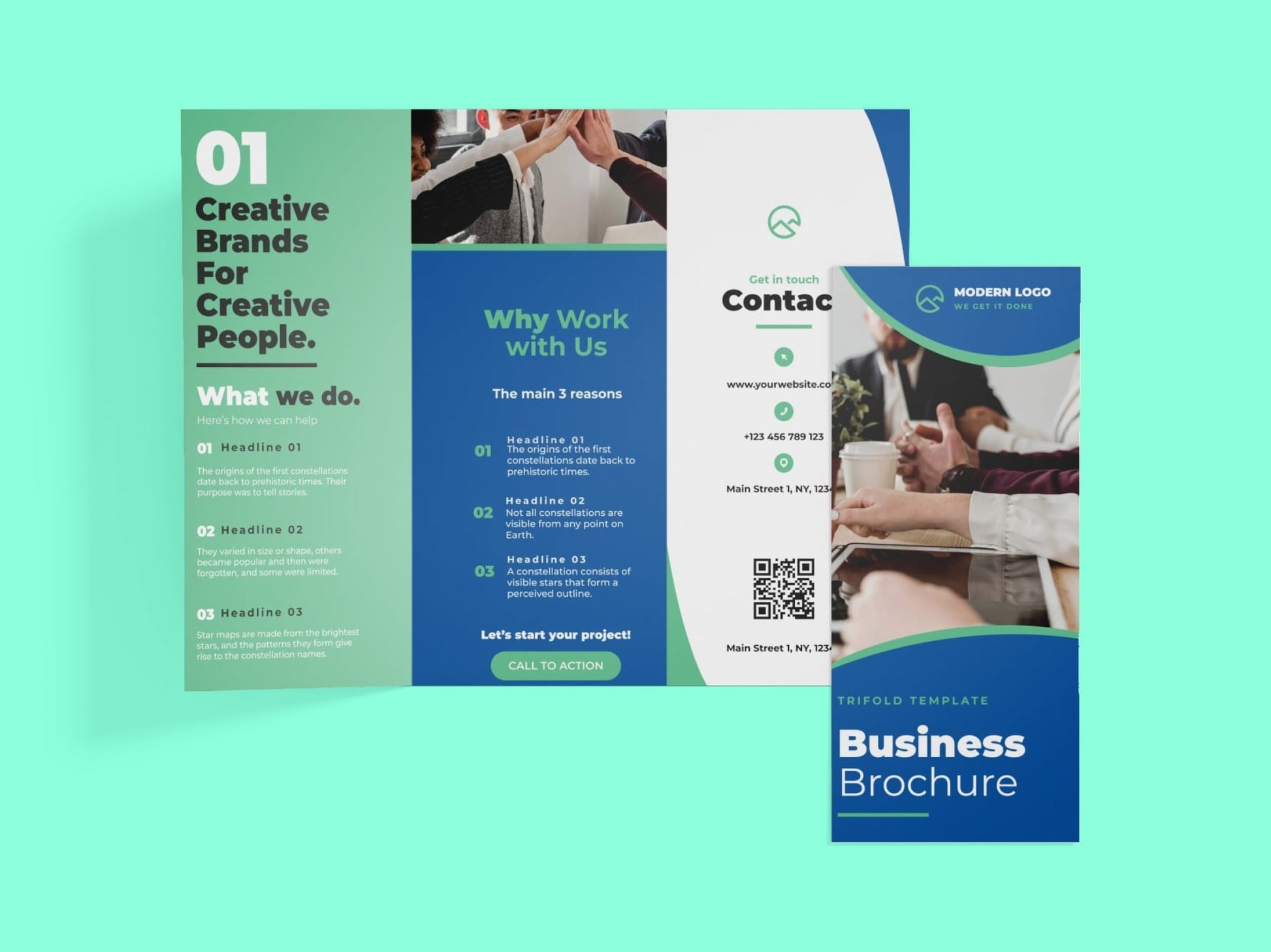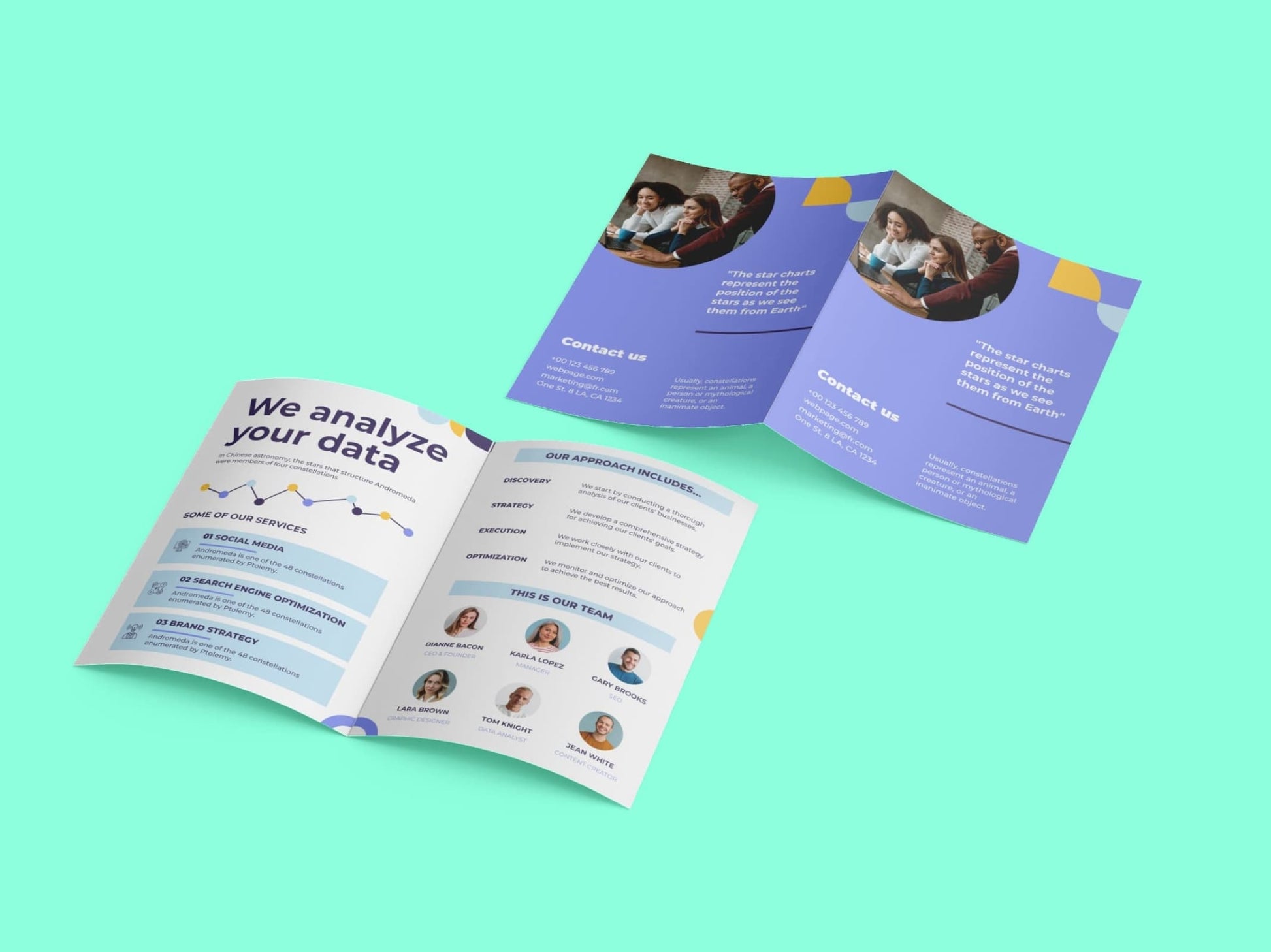- Great for providing in-depth product or service details in a folded, compact layout.