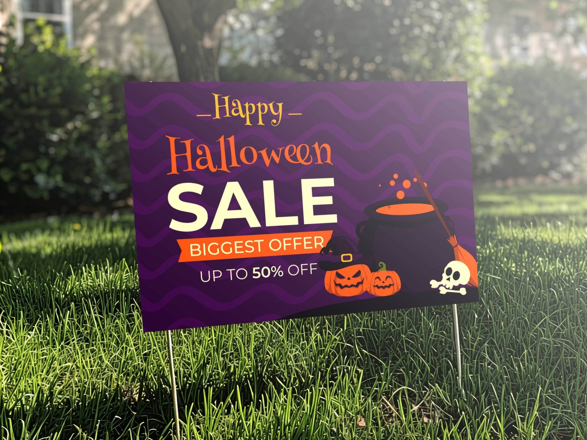 A: Yes, our corrugated plastic Halloween yard signs are built to withstand wind, rain, and sunlight—ideal for outdoor display throughout the Halloween season.