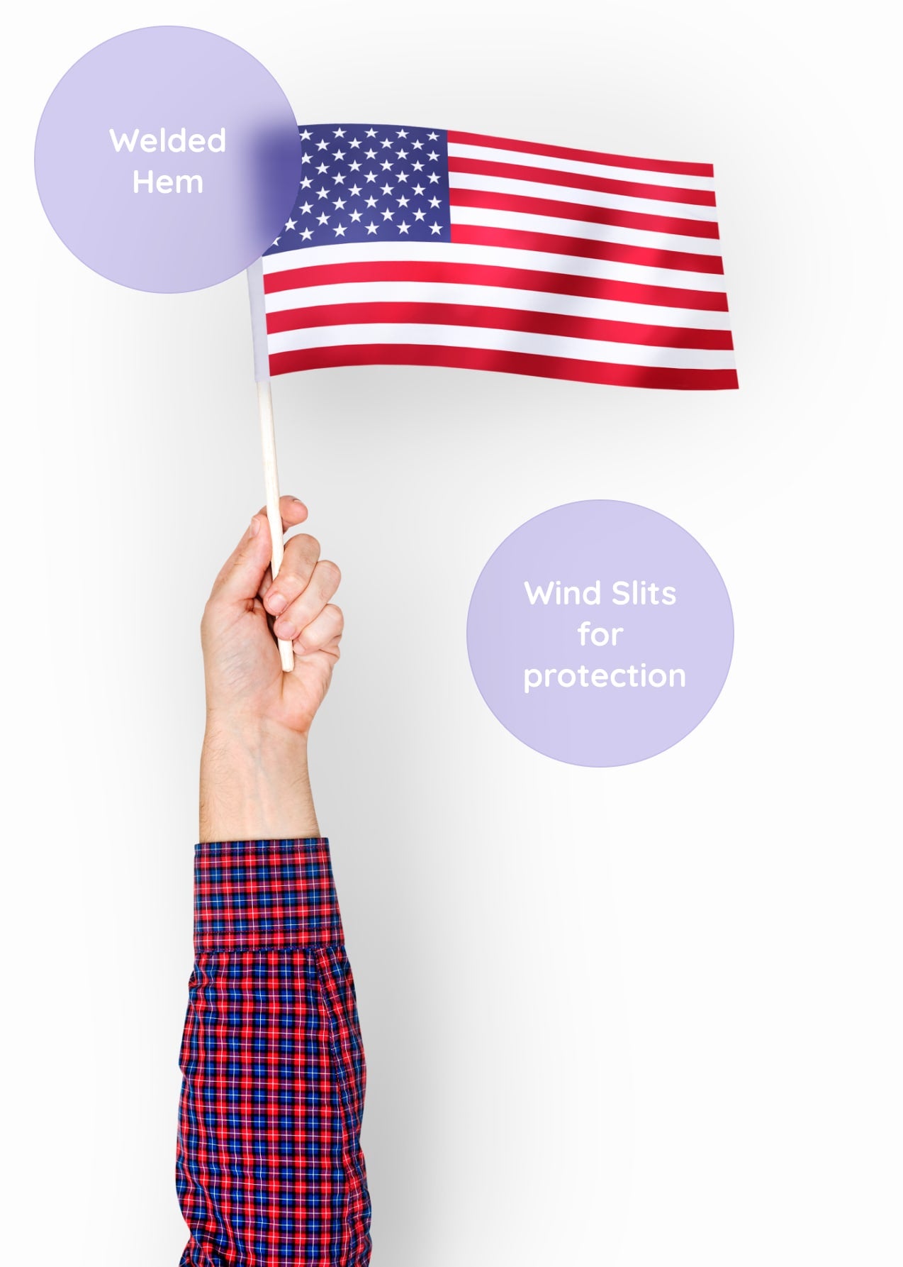 Designed for ease of use, our hand flags are lightweight and portable, making them ideal for waving at parades, rallies, and sports events. Their compact design also makes them easy to distribute in bulk.