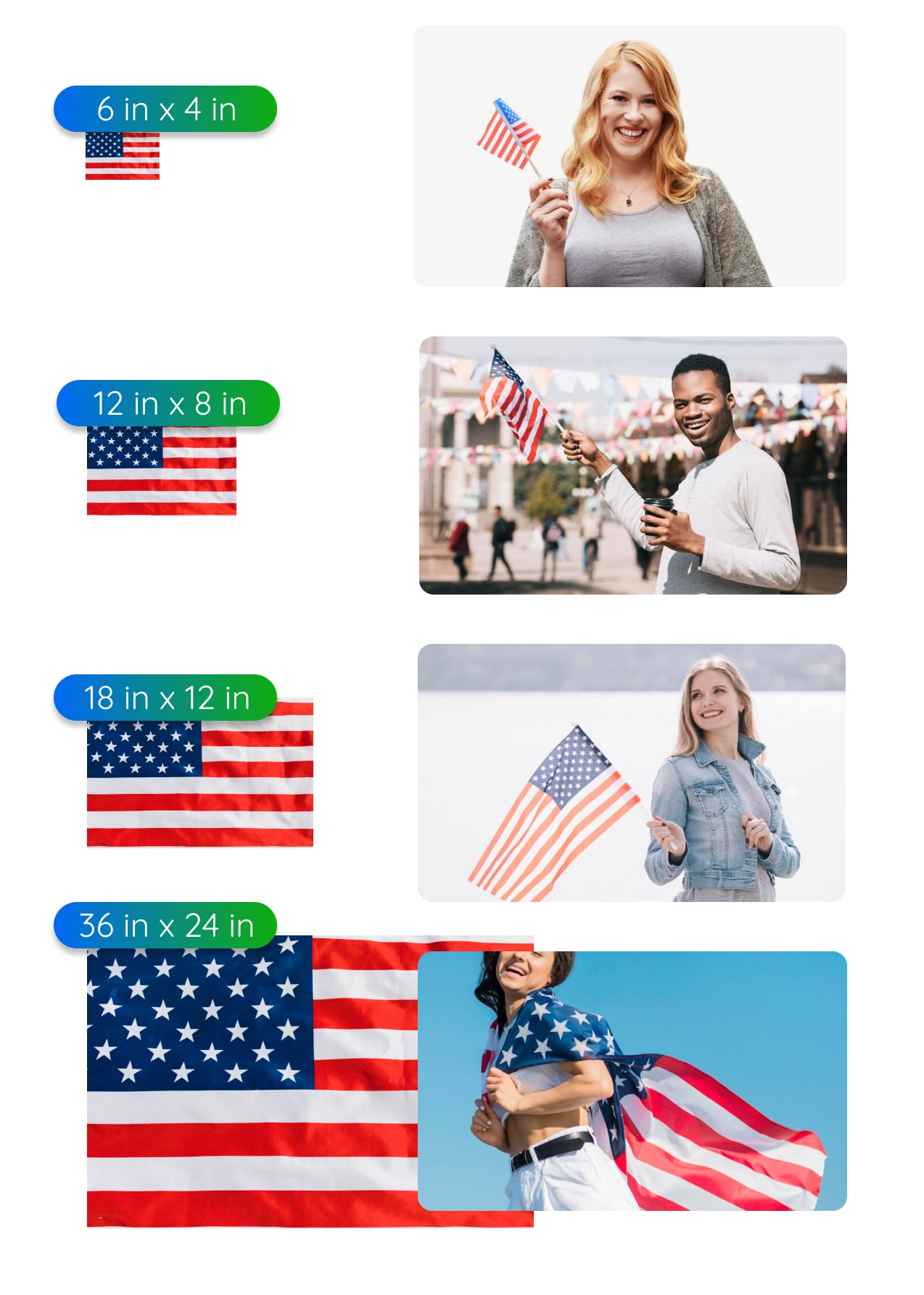A: We offer hand waving flags in a wide range of standard sizes to suit any occasion, including 4" x 6", 8" x 12", 12" x 18", 16" x 24", and 24" x 36". If you're looking for a unique size that’s not listed, we’ve got you covered. Custom sizing is available—just share your exact requirements and we’ll tailor a hand flag to match your needs perfectly. Whether it’s for a sports rally, parade, or promotional event, your flag will be made to fit the moment.