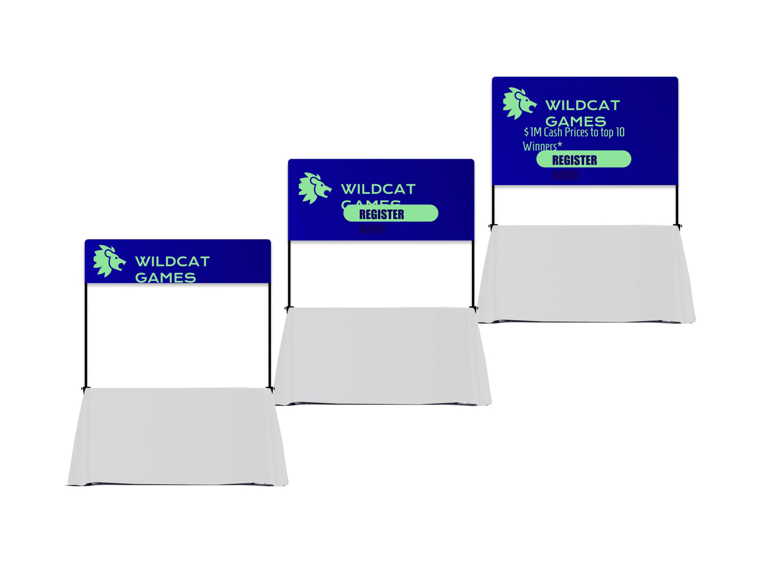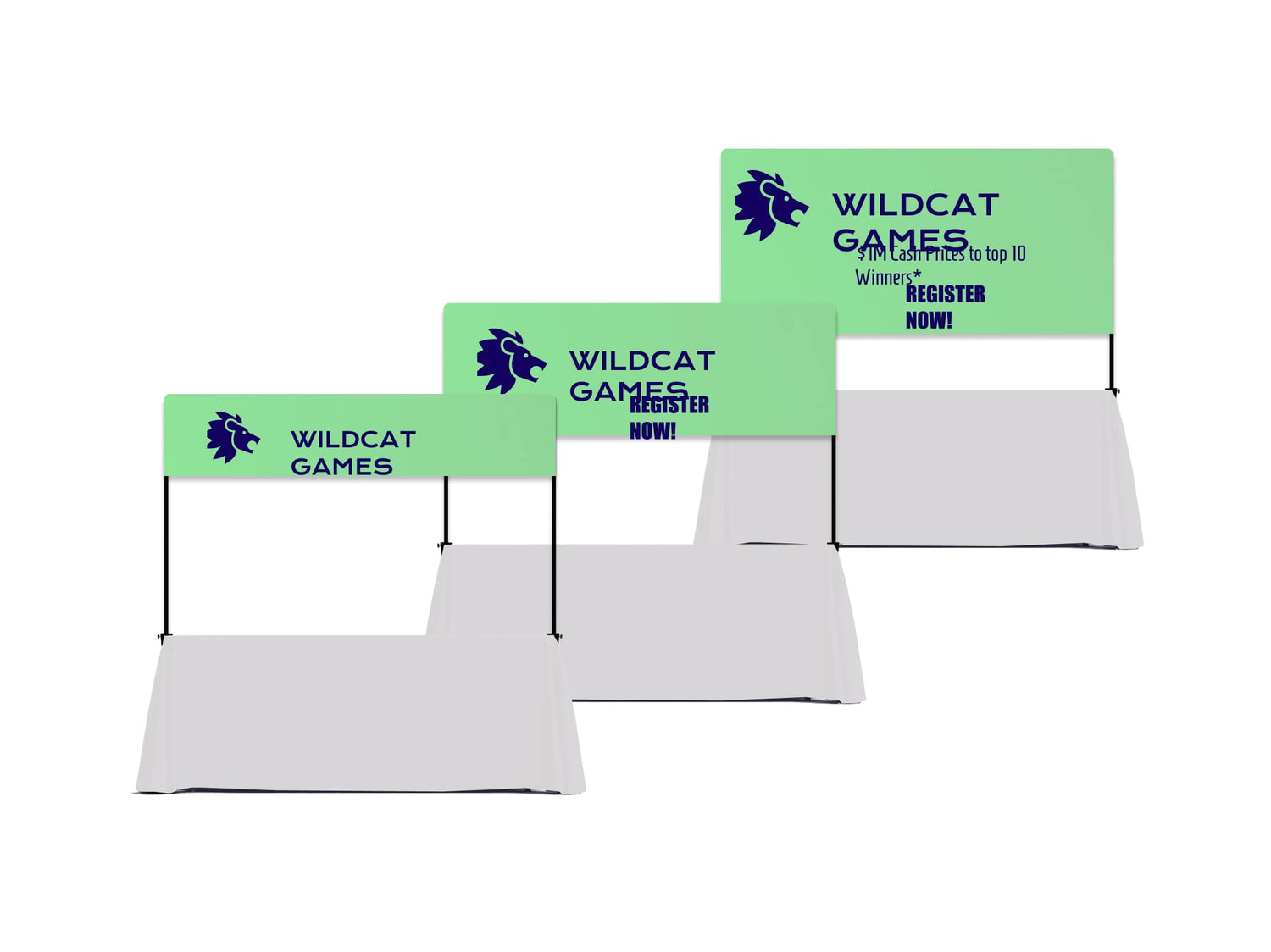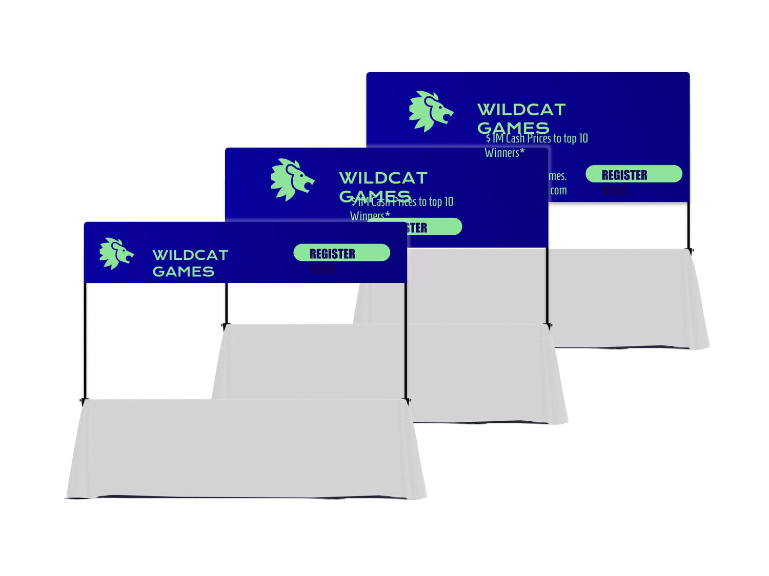 Each size is tailored for different marketing needs, ensuring your brand stands out at trade shows, business expos, and corporate events.