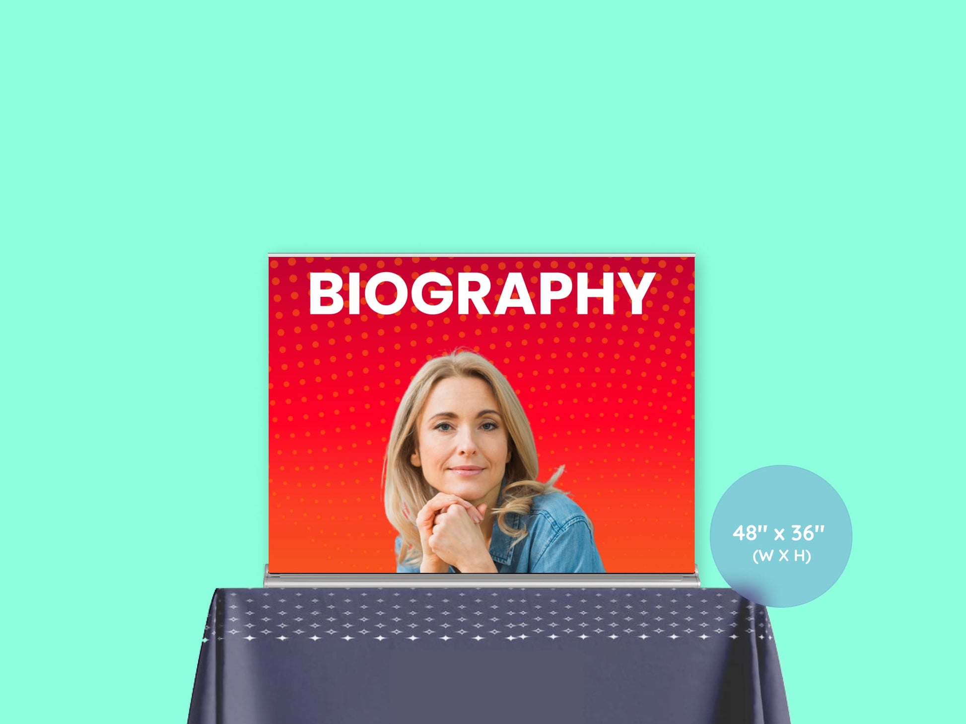 A great option for displaying panoramic visuals, product collections, or large infographics. Ideal for wide booth tables or double-table setups at trade shows and expos.